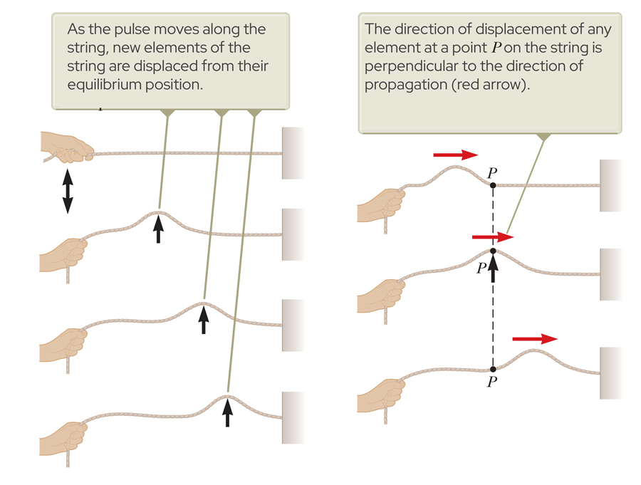 When a rope that is tensioned stretches in the center, the wave that is formed will travel to one end and return inverted to the opposite end. In such a way that two waves will be formed that travel in opposite directions.
